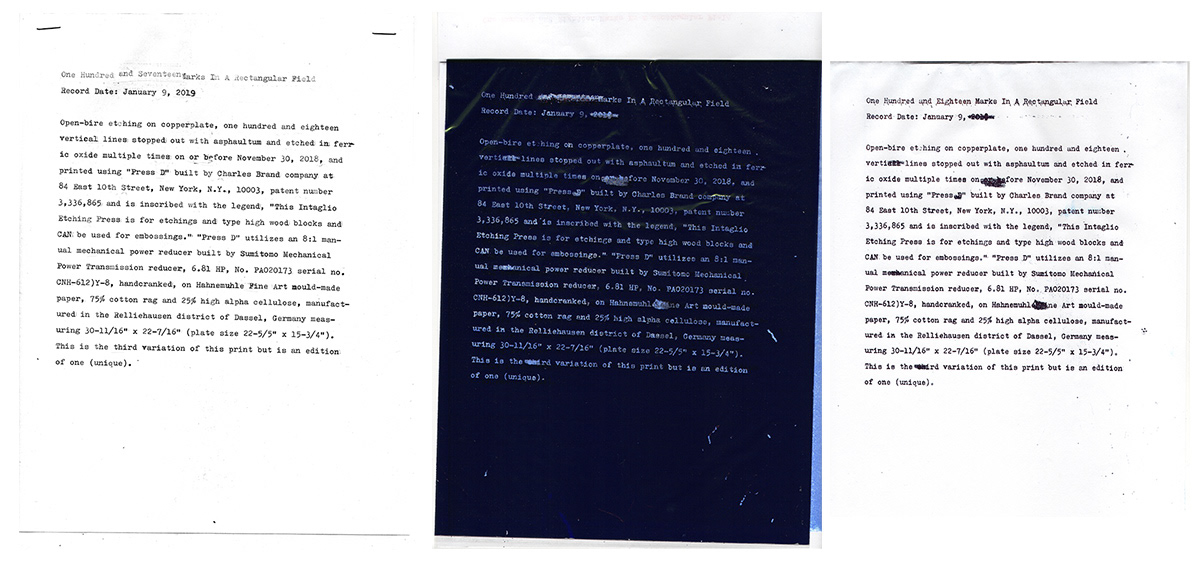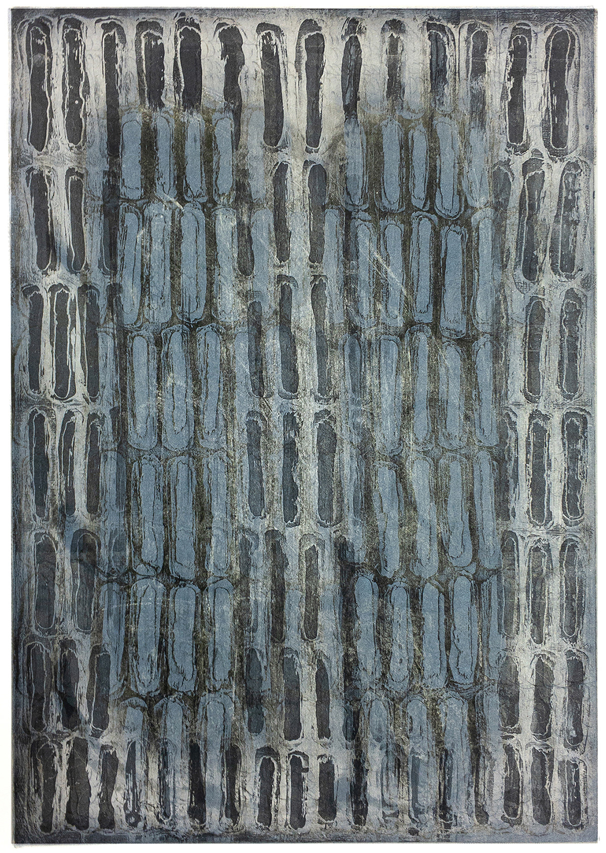 Viscosity print, copperplate open bite, drypoint and aquatint etching on Hahnemühle paper, 2019