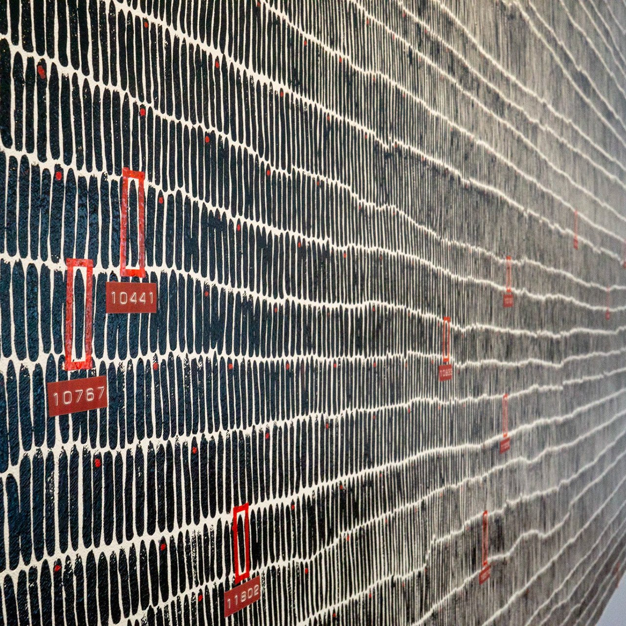 I had some extra studio time at my MASS MoCA residency to finish and document “191,136 Deaths.” This piece was originally conceived for the MassArt SOWA show “The Hour of Lead,” but I ironically ended up getting COVID and I wouldn’t have been able to do the site-specific install, where each sheet would have been dress-pinned to the gallery wall. It consists of 153 sheets of graph paper, each sheet containing 1,312 marks in colored pencil. The marks are color-coded for three forms of death in the United States in 2021-2022: 96,096 marks in purple for drug-induced deaths, 49,061 marks in red for alcohol-induced deaths, and 45,979 marks in blue due to suicide during the 2020-2021 COVID period. The large windows in these shots make it look little smaller than it really is (about 130 square feet) but perhaps some of the detail shots communicate the enormity of this tragedy. During install, I found that simply setting the sheets of graph paper on the floor was more profound than hanging them on the wall, as the viewer is forced to look down at the casualties, as if visiting a relative or friends at a cemetery plot, rather than objectively presenting them on a wall as a data set.