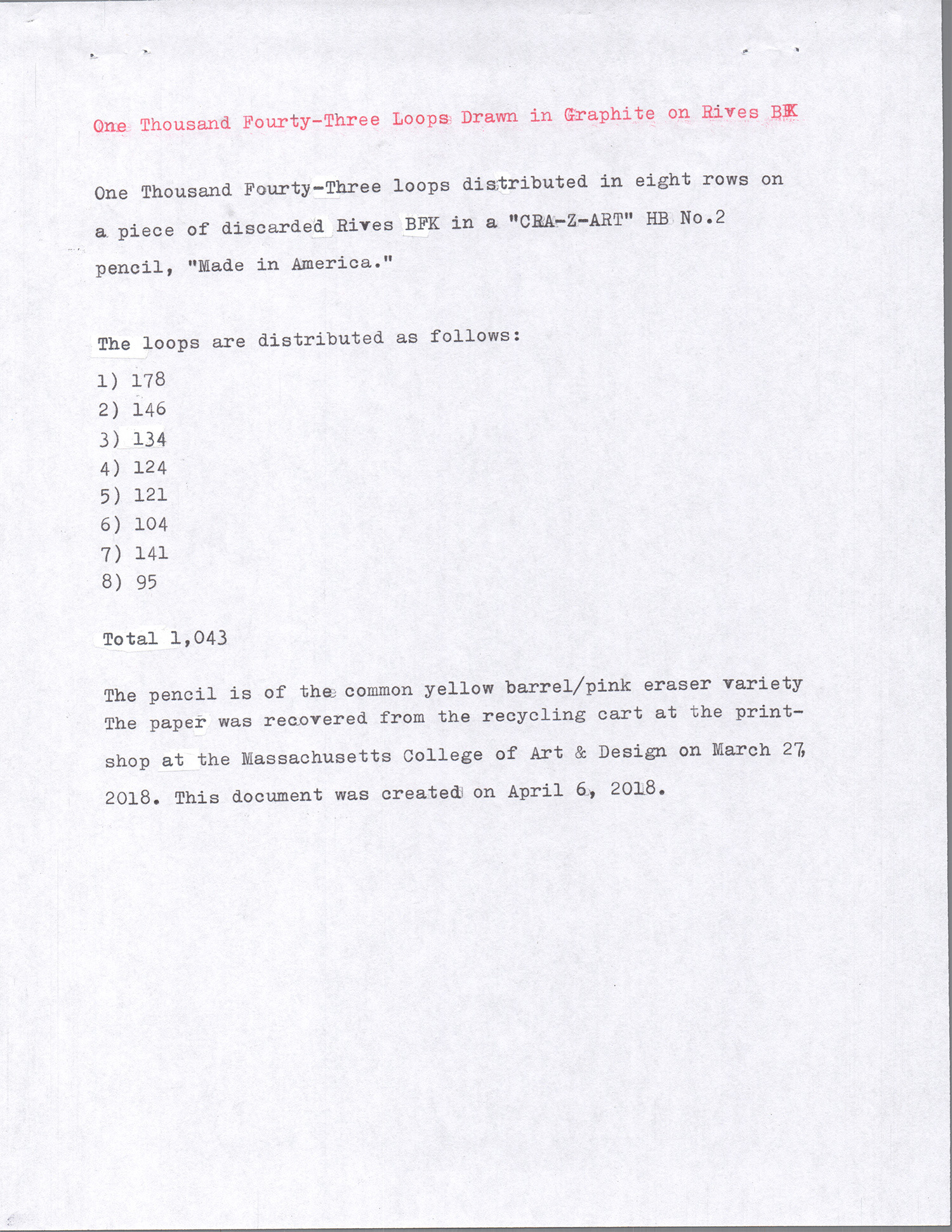 One Thousand, Forty-three Loops Drawn in Graphite on Rives BFK