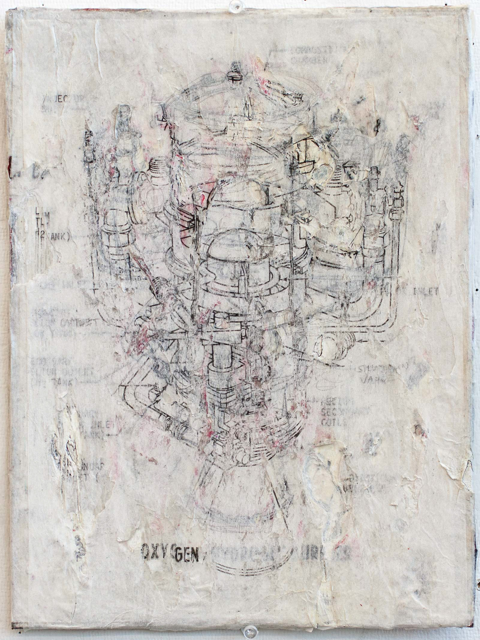 Inkjet, ink and acrylic on tracing paper with acrylic gel medium on canvas panel.